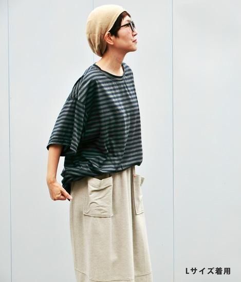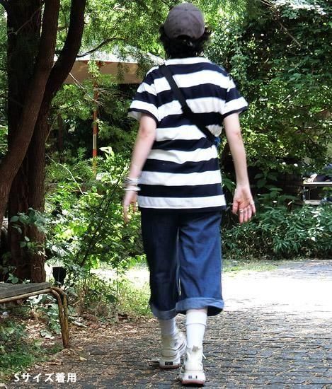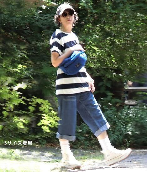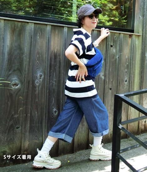 太いボーダーの鹿の子ニットです。すこし伸縮率低めです。袖口衿口にどの色を持ってくるかもアレンジのしどころですね。