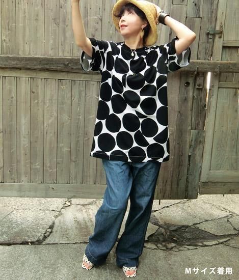 大きくて不揃いでアバンギャルド風なドットがかっこいい!ベア天竺ニットです。伸縮性に優れ、すこーしハリのある縫いやすいニット♪